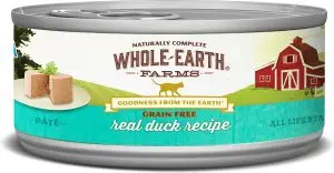 Whole Earth Farms Grain Free Read Duck Pate is a really good choice to give you cat some variety in their food. Being a wet food, it provides your cat with fluids which can sometimes be a problem for cats that don’t drink as much as they should. Whereas some products use water as a filler for their foods, this product uses broth which also has nutritional value. The product also includes chicken meat and chicken liver which provide excellent animal based proteins. It is also a low calorie food for any cat that needs to watch their weight.